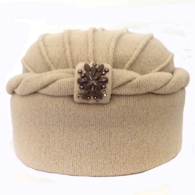 Высокая женская шапка-кубанка из шерсти. Спереди оформлена перемычкой, украшенной стразами. . По окружности головы шапку обрамляет коса, выполненная из основного полотна. Вертикальные складки по макушке шапки придают ей дополнительный объем.