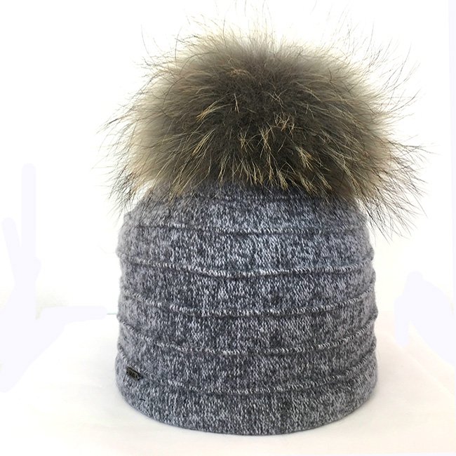 Женская шапка из 100% шерсти меланжевой расцветки, с подкладкой из флиса. Флисовая подкладка делает изделие комфортным в носке.  Украшена большим натуральным помпоном в цвет изделия. Помпон съемный, на кнопке. Горизонтальные отстрочки придают дополнительный объем. Сбоку – фирменная шильда.