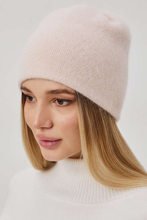 Шапка двойная, выполнена из мягкой, пушистой пряжи "Angora". Вязка плотная и гладкая.