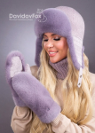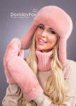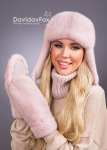 Комплект ушанка норка трикотаж розовый жемчуг, манишка, рукавички замша