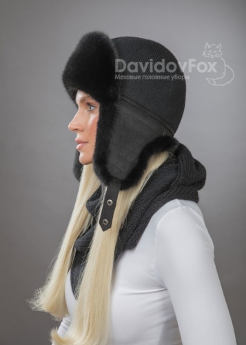 Комплект ушанка трикотаж экомех блэк косынка