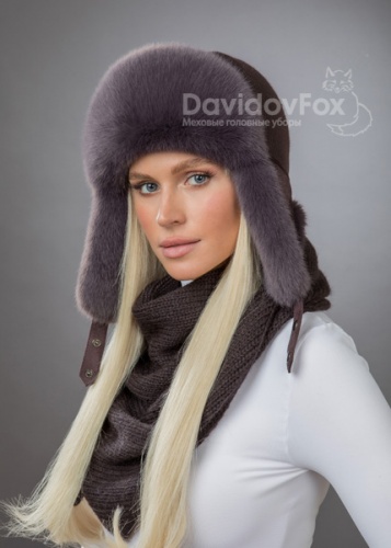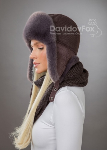 Комплект ушанка трикотаж экомех браун косынка