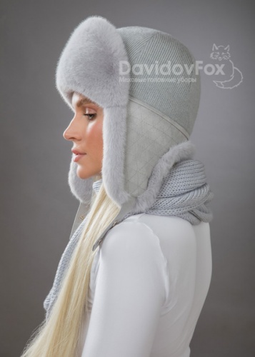 Комплект ушанка трикотаж экомех сапфир косынка