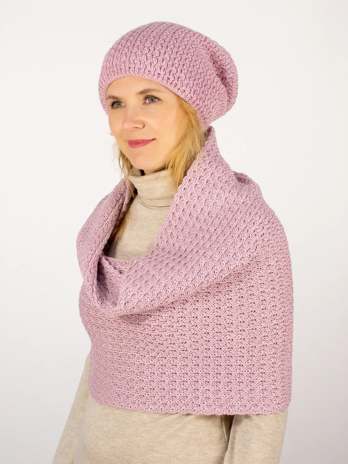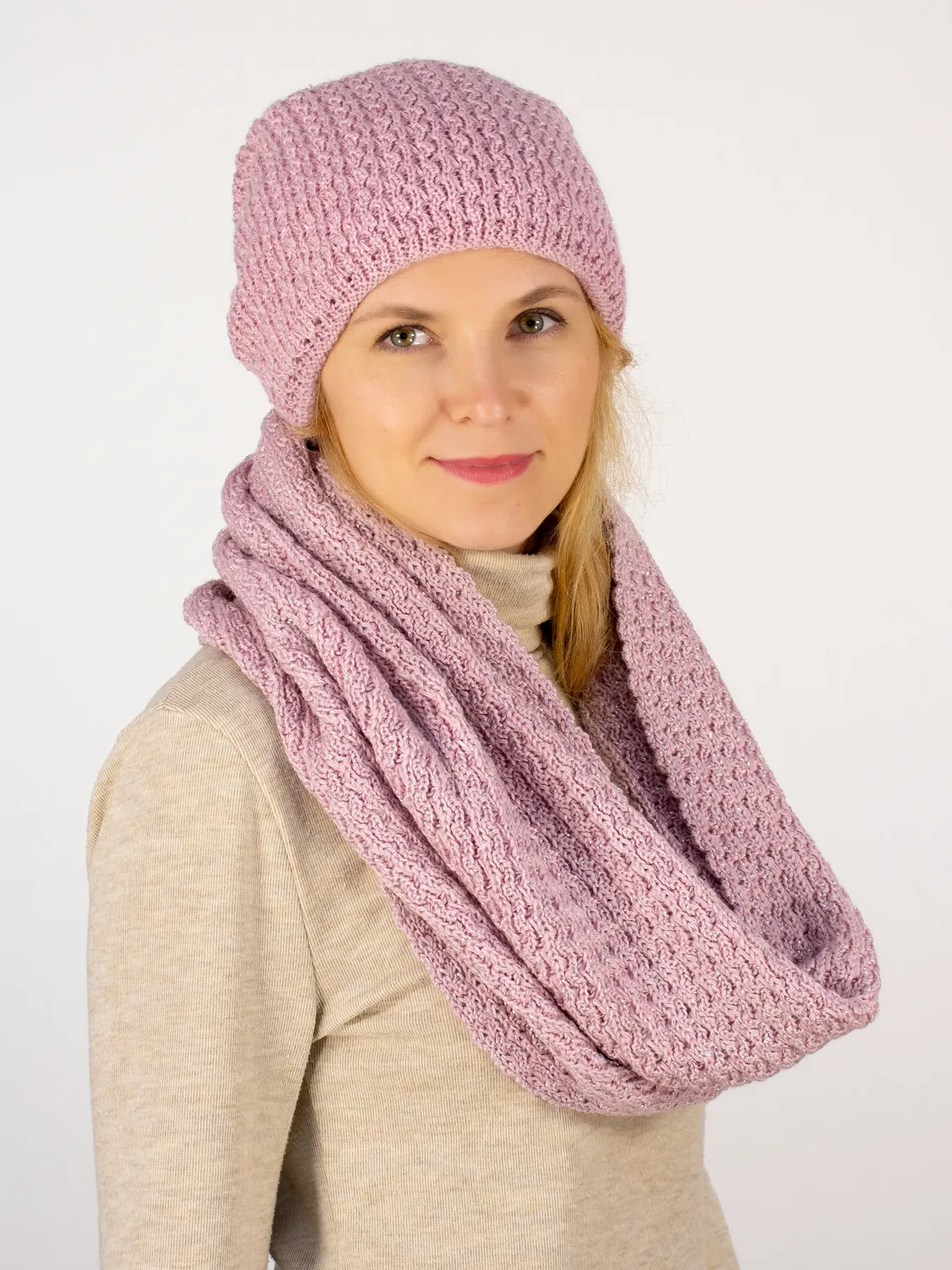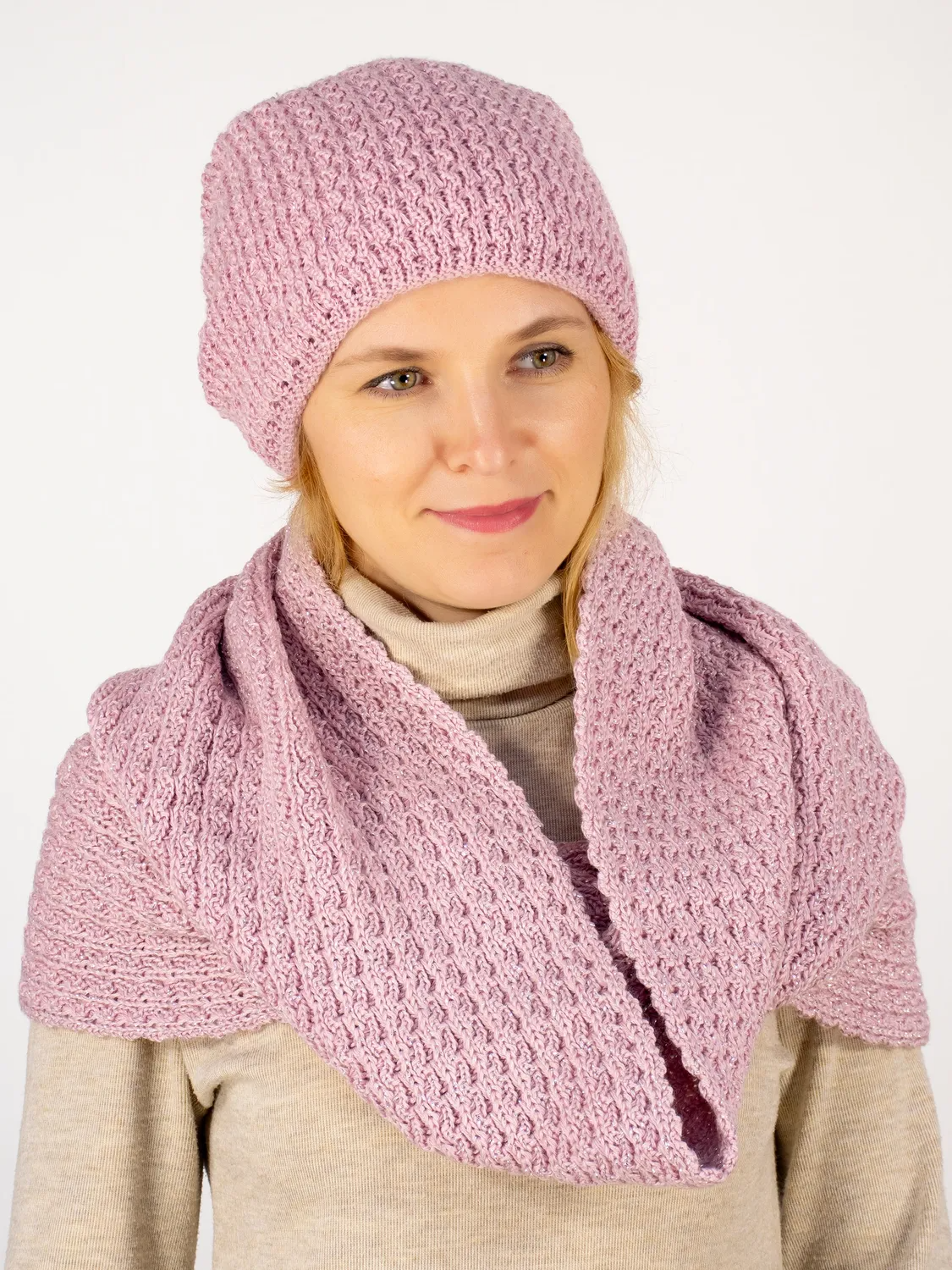 Комплект зимний женский шапка+шарф Матильда (Цвет лавандово-розовый).