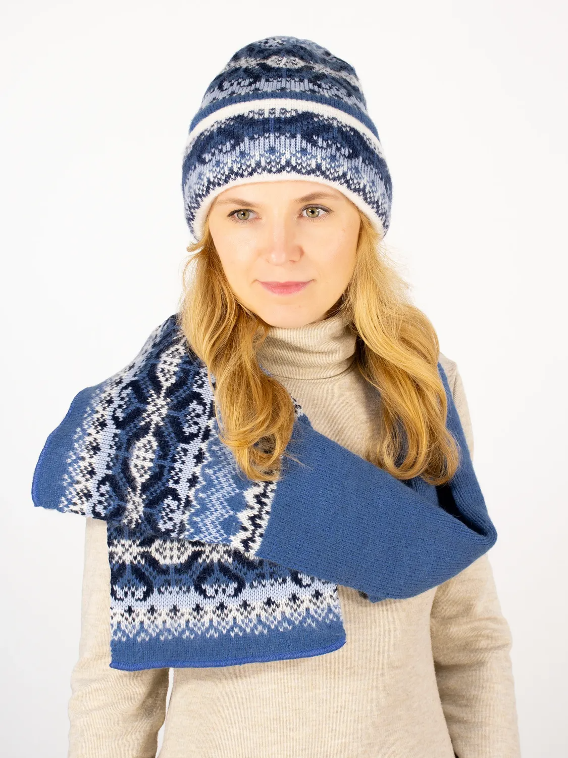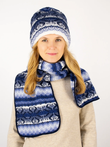 Комплект зимний женский шапка+шарф Валентина (Цвет светло-синий), размер 56-58, шерсть 50%, мохер 30%