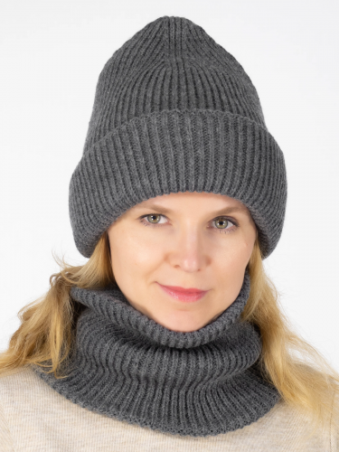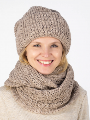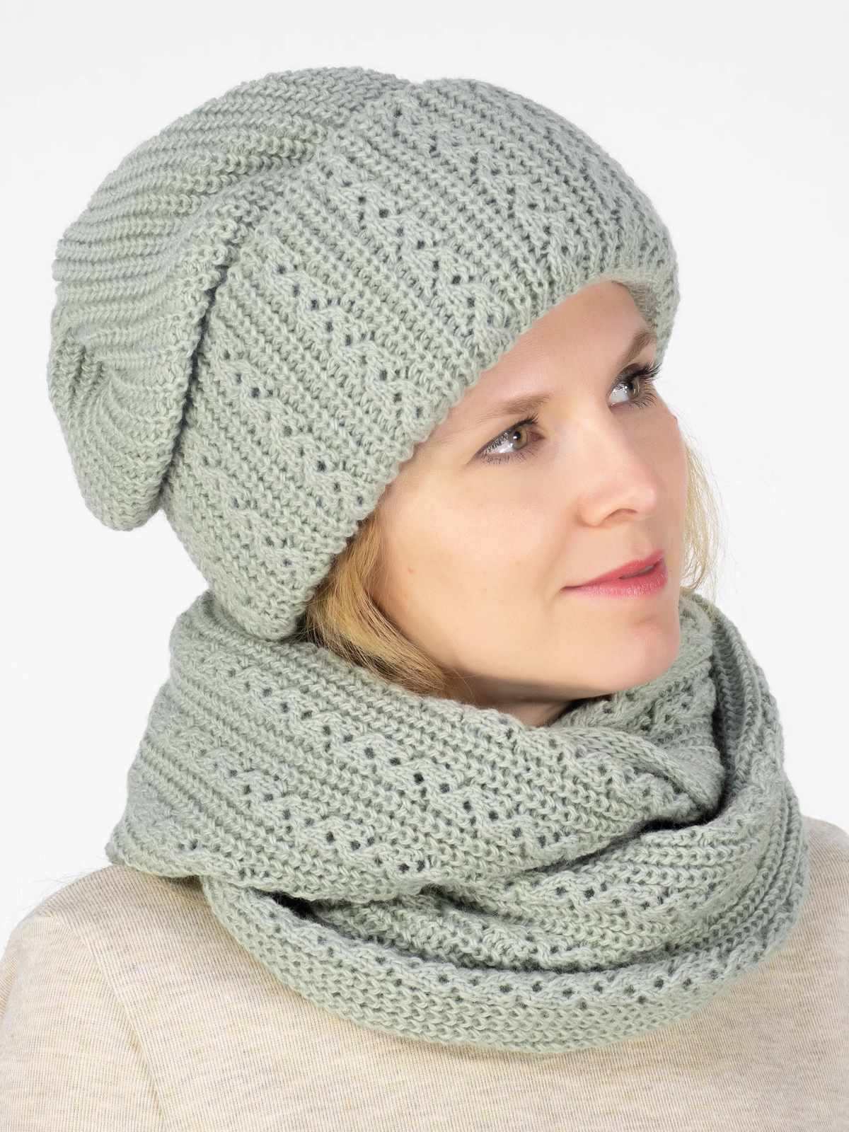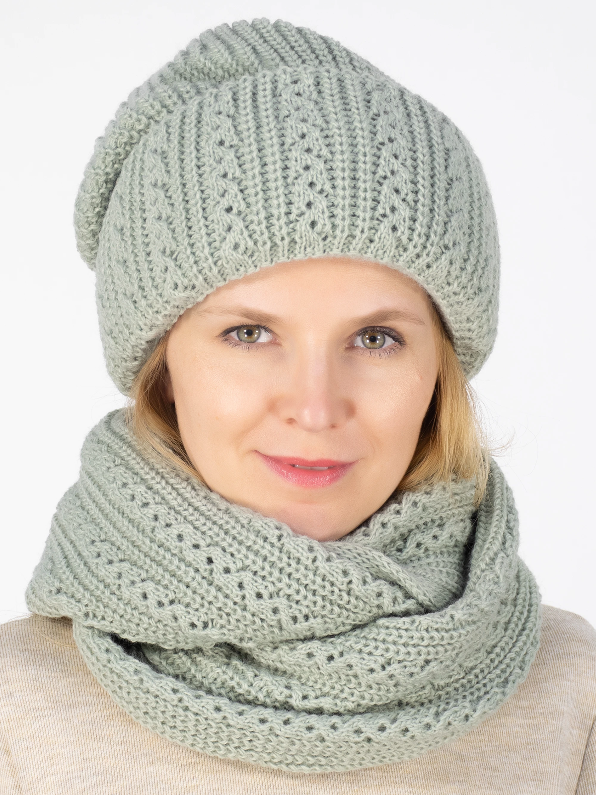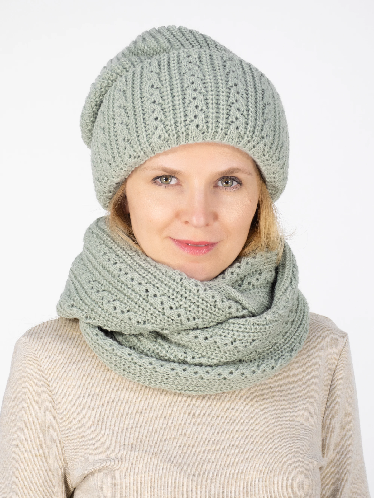 Комплект зимний женский шапка+снуд Ажур (Цвет светлая полынь), размер 56-58, шерсть 30%