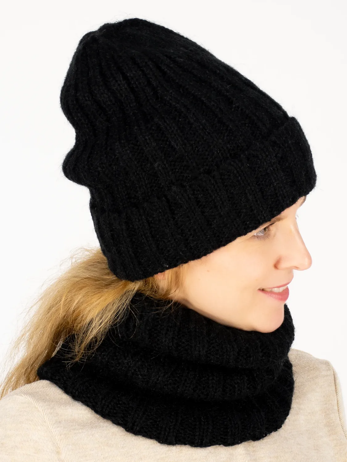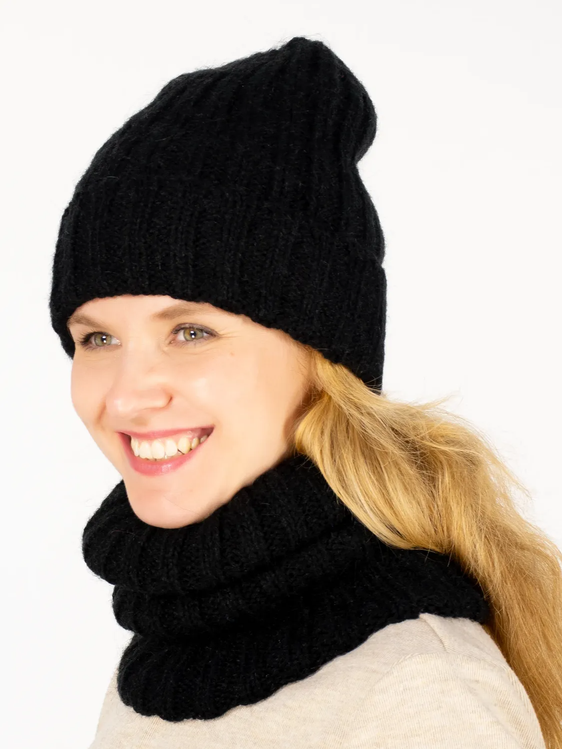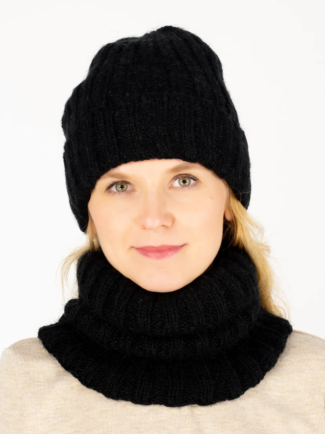 Комплект зимний женский шапка+снуд Жизель (Цвет черный).