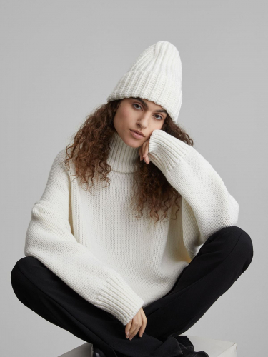 Шапка-бини универсальной формы, имеет свободную посадку и английскую резинку.