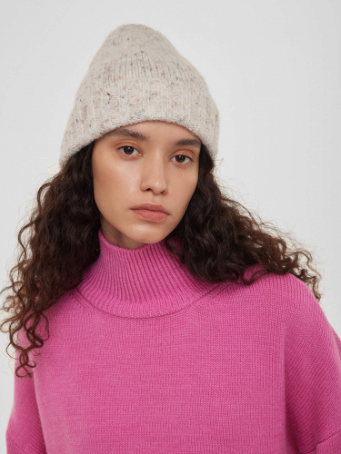 Шапка с отворотом из смесовой пряжи улучшенных свойств с альпакой в составе. Вязка 3 класса.