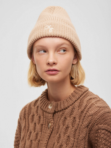 Шапка в рубчик с отворотом и вышивкой, бежевый