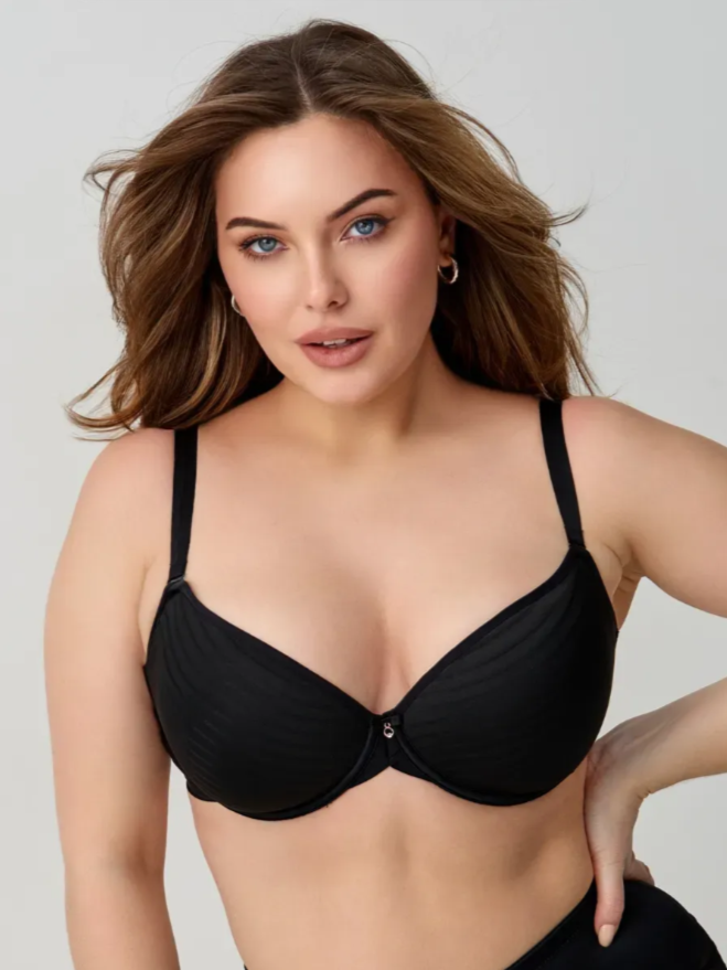 Бюстгальтер с чашками из материала спейсер — современное решение для ежедневного комфорта. Инновационный 3D-текстиль пропускает воздух, позволяя коже дышать и сохраняя ощущение свежести в любую погоду и при любых условиях. Формованные чашки адаптируются к форме груди, обеспечивая лёгкую поддержку и естественный контур. Косточки стабилизируют посадку, а мягкие широкие бретели равномерно распределяют нагрузку на плечи и спину. Рисунок на чашках придает изысканность и индивидуальность модели, сохраняя эффект быть незаметным под одеждой. Благодаря высокой износостойкости и продуманной конструкции бюстгальтер сохраняет форму и комфорт даже после длительного ношения. Бретели регулируются и отстегиваются.