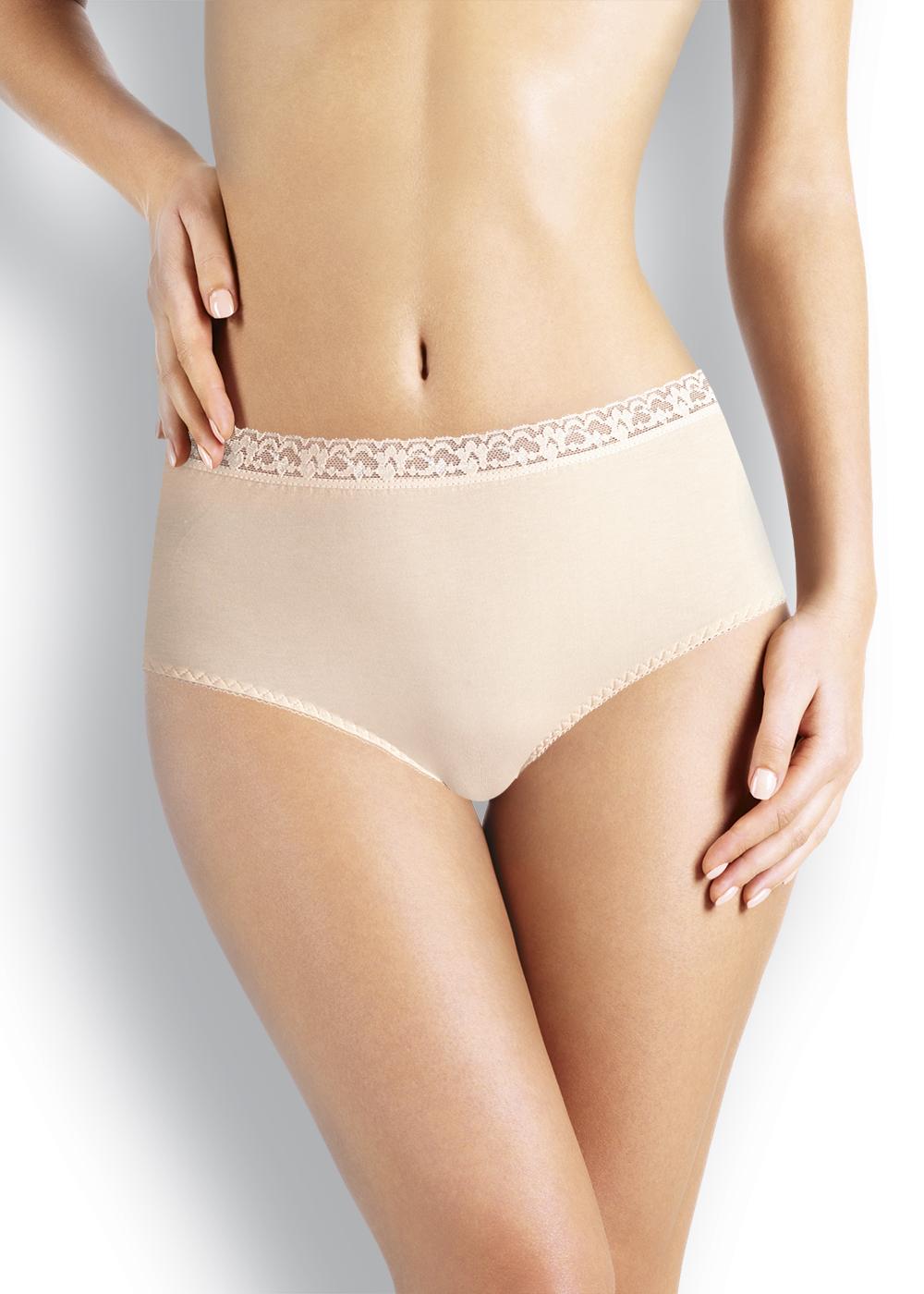 Описание: Классическая модель из однотонного трикотажного полотна. По ножкам обработана кантом, по талии - широкой кружевной резинкой.