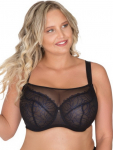 Черный 65G, 65I, 65K, 65L, 65M, 70G, 70H, 70I, 70J, 75F, 75I, 80E, 80I, 85C, 85D, 85G, 90C, 90D, 90E, 95C, 95D, 95E Бюстгальтер-топ A-111 M выполнен с мягкими чашечками на косточках, с дополнительными боковыми поддержками, чашки шитые из неэластичной сетки, снаружи покрыты гипюром, спинка из стабилизирующей сетки, Бретельки регулируются по длине, не отстёгиваются, на спине застежка-удлинитель, фурнитура металлическая крашеная. полиамид 85%, эластан 15%