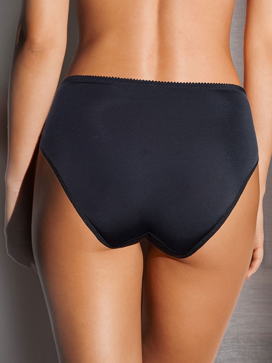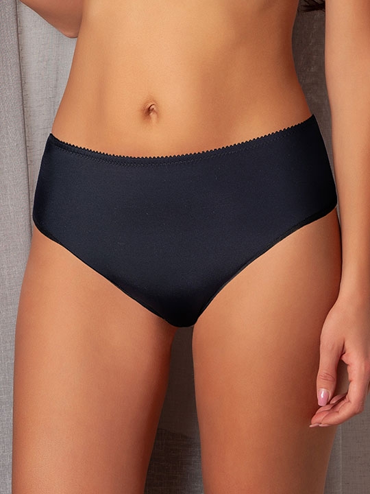 Черный 42, 44, 46, 48, 50 Трусы-слип комфорт со средней линией талии. Выполнены из эластичной микрофибры. Срезы по краю ножек обработаны на плоскошовной машине. Полиамид 65%, Эластан 20%, Хлопок 15%