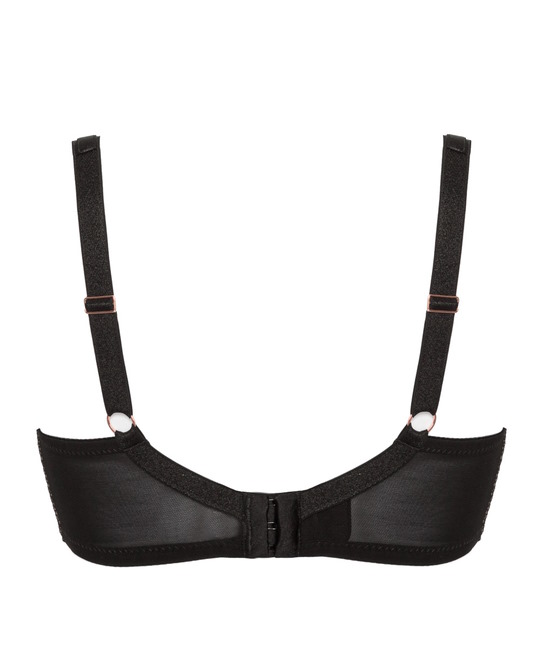Бюстгальтер Chita PU на косточках, с дополнительными боковыми поддержками, чашки шитые, нижняя часть на тонком поролоне телесного цвета, внутренняя сторона проложена хлопковым трикотажем, внешняя и верхняя часть чашек кружевная. Бретельки не отстёгиваются, регулируются по длине. На спине чёрная застёжка на удлинитель, количество крючков в ряду застёжки, увеличивается пропорционально размеру бюстгальтера. Бюстгальтер идеально сочетается с трусиками Chita.