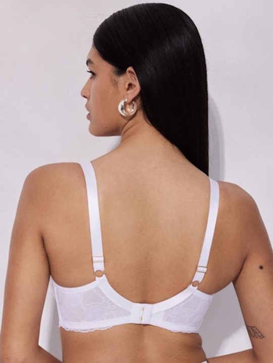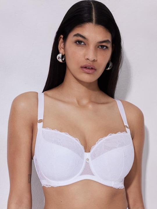 Бюст Glow PU выполнен на косточках (на каркасах), с дополнительными боковыми поддержками, чашки шитые, нижняя часть на тонком поролоне белого цвета, с внешней стороны из кружева в легким мерцающим эффектом, внутренняя сторона проложена хлопковым трикотажем, верхняя часть кружевная, продублирована сеткой в тон. Бретельки не отстёгиваются, регулируются по длине, фурнитура металлическая цвета желтого золота. Спинка кружевная продублирована сеткой в тон. На спине застёжка на удлинитель, количество крючков в ряду застёжки, увеличивается пропорционально размеру бюстгальтера. Бюстгальтер идеально сочетается с трусиками Glow.