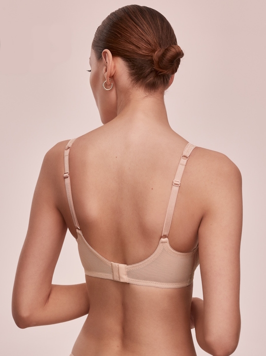 Бюстгальтер из коллекции Loretto выполнен на основе бюста Chita M бралетт с мягкими чашечками на косточках, чашки шитые из двухцветного кружева, продублированы телесной тканью, с дополнительными боковыми поддержками. Бретельки регулируются по длине, не отстёгиваются. Пояс из двух слоев телесной сетки. Фурнитура металлическая цвета меди. На спине застёжка на удлинитель, количество крючков в ряду застёжки увеличивается пропорционально размеру бюстгальтера. Бюстгальтер идеально сочетается с трусиками из коллекции Loretto.