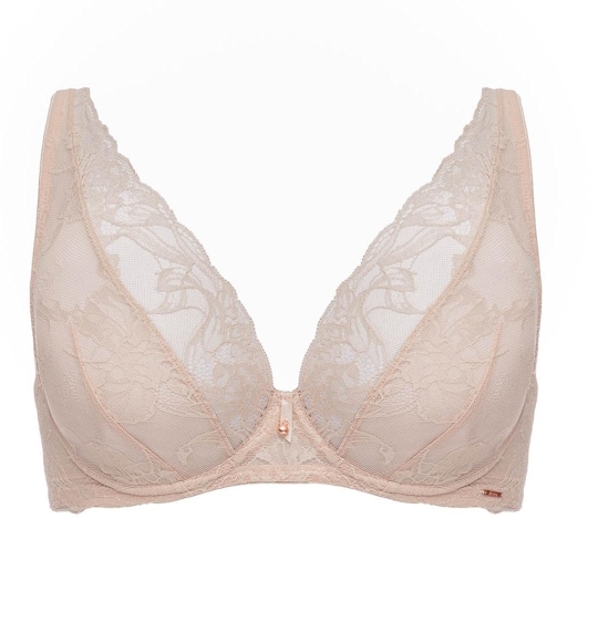 Бюстгальтер-бралетт из коллекции Sublime выполнен с мягкими, шитыми из гипюра, чашками на косточках, продублированными телесной сеткой, с дополнительными боковыми поддержками для предотвращения скручивания. Пояс из гипюра продублирован сеткой. Широкие бретели с подкладкой из мягкого пеноматериала регулируются по длине, отстёгиваются на спинке. На спине застёжка на удлинитель, количество крючков в ряду застёжки увеличивается пропорционально размеру бюстгальтера, фурнитура металлическая матовая цвета меди. Между чашек украшение в виде подвески и атласной ленточки. Бюстгальтер идеально сочетается с трусиками из коллекции Sublime.