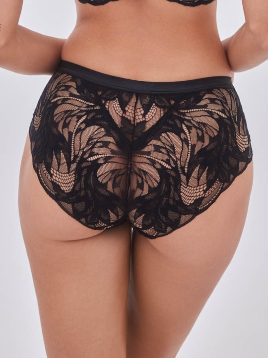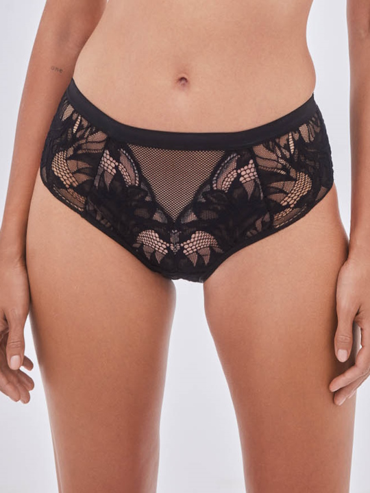 Трусики слип из коллекции Boudoir выполнены из роскошного кружева и сетки, спереди продублированы телесной сеткой. Ластовица проложена 100% хлопком телесного цвета.