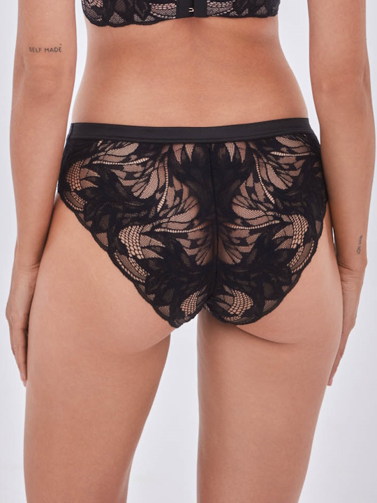 Трусики бразильяна из коллекции Boudoir выполнены из роскошного кружева и сетки, спереди продублированы телесной сеткой. Ластовица проложена 100% хлопком телесного цвета.