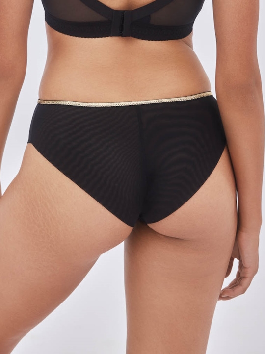Трусики бразильяна из коллекции Chiara из кружевного полотна, продублированного сеткой и сетки, спинка из сетки, сложенной вдвое, резинка узкая с золотым люрексом. Ластовица проложена 100% хлопком.