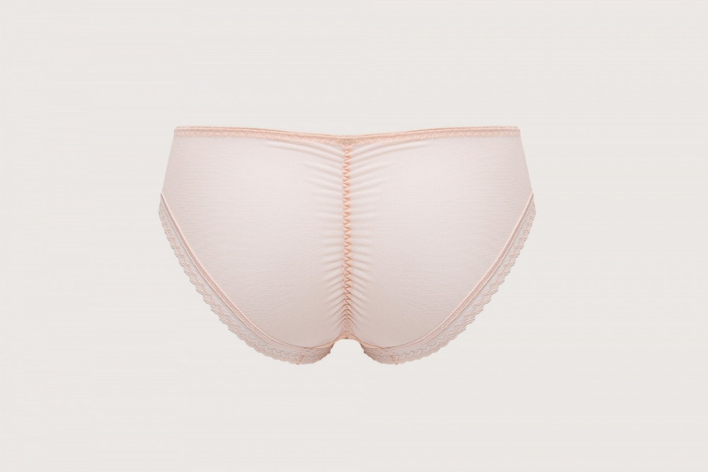 Трусики бразильяна из коллекции Nocturn выполнены из сетки, спереди продублированы телесной сеткой. Ластовица проложена 100% хлопком телесного цвета.