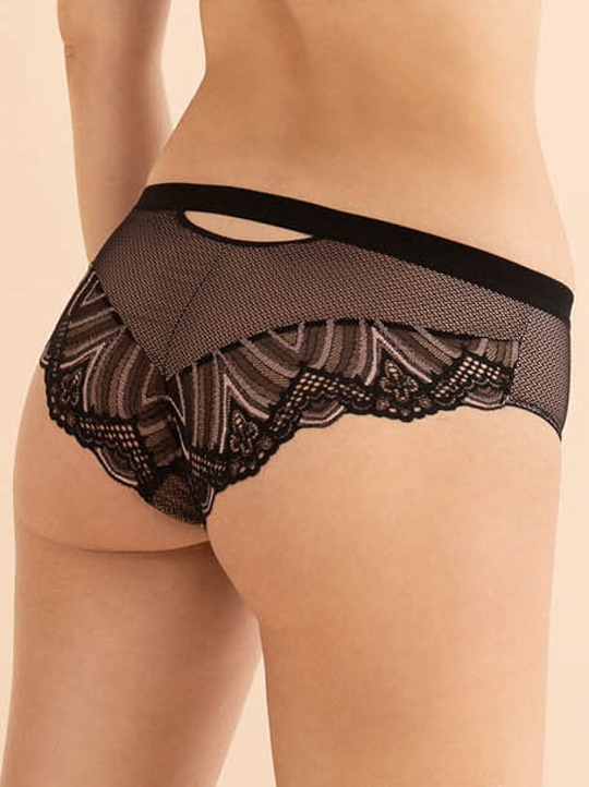 Трусики слип из коллекции Noel из сетки и кружевного полотна, продублированы сеткой цвета пудры, пришита широкая эластичная резинка. Ластовица проложена 100% хлопком.