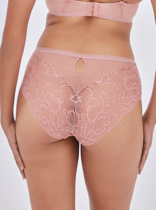 Трусики слип из коллекции NudeRose выполнены из роскошного кружева с цветочным рисунком и декоративной сетки, на спинке каплевидный вырез. Ластовица проложена 100% хлопком телесного цвета.