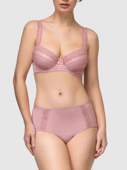 Трусы-слип с высоким бочком выполнены из нежного микрофибры с поперечной кружевной отделкой на передней части. Комфортны на теле, благодаря средней посадке и высоте бочка - 14 см. Из коллекции "Pleat". Пыльная роза