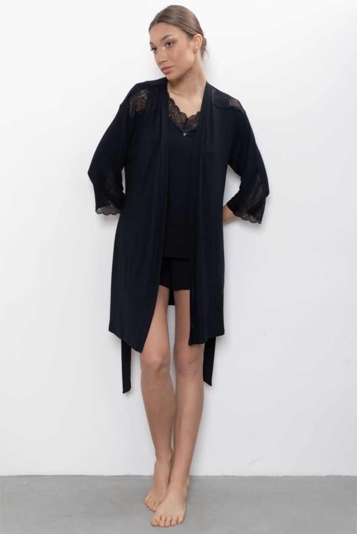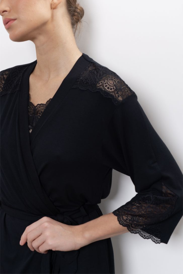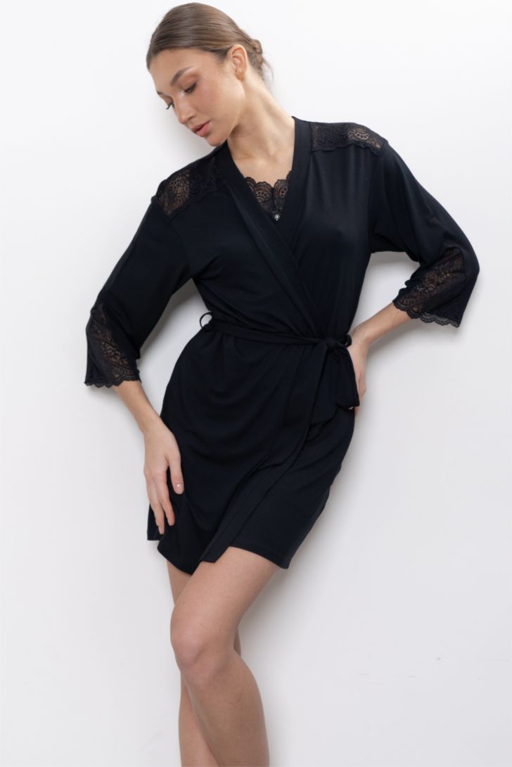 Укороченный пеньюар свободного кроя идеально садится по фигуре, позволяя вам чувствовать себя комфортно и уверенно. Он прекрасно подходят как для романтических вечеров, так и для уютных домашних вечеров. Модель дополнит образ к сорочке на тонкой бретели, к длинным брюкам в качестве кардигана. Линия плеча приспущена, по плечам