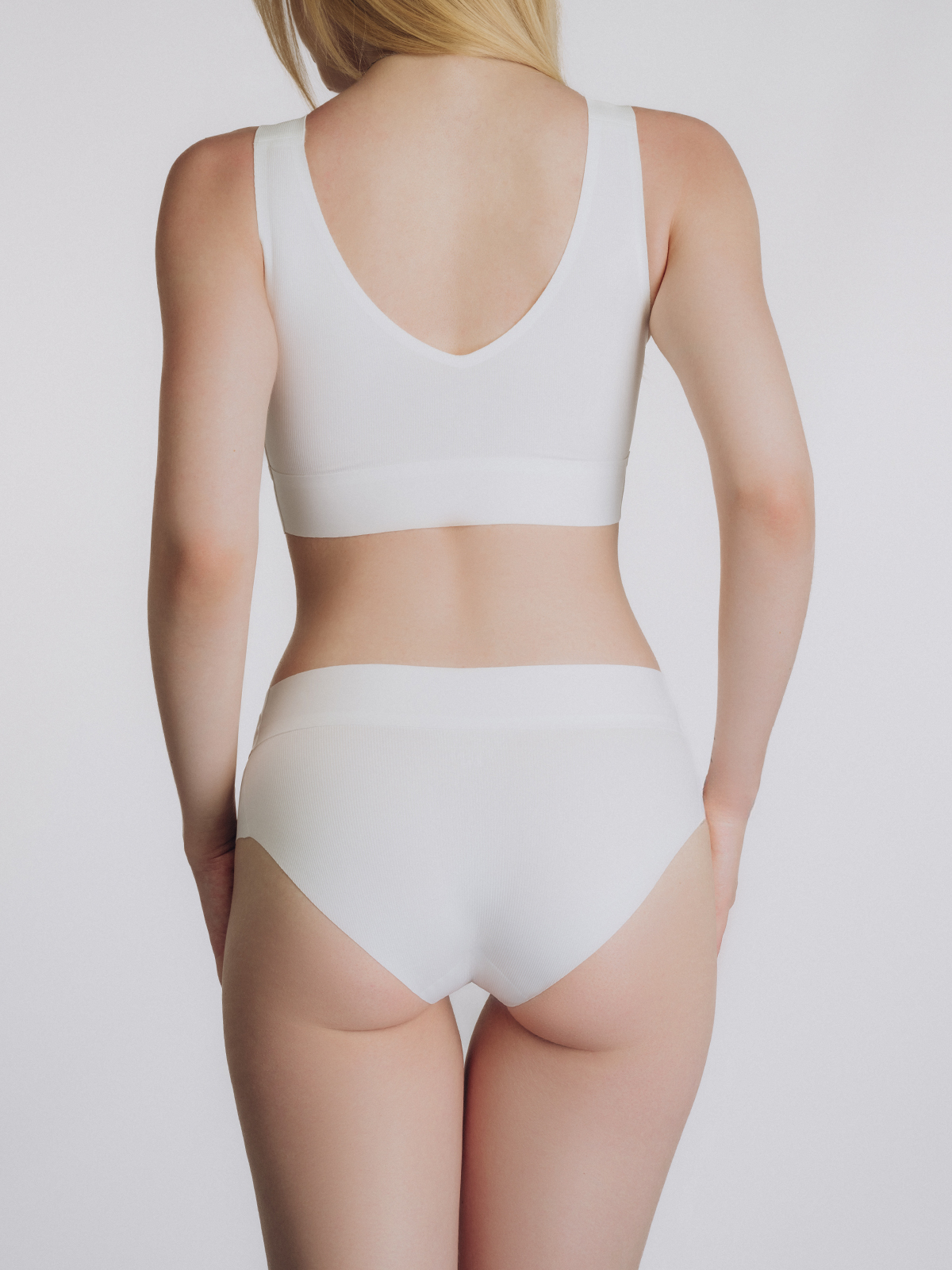 Бюстгальтер изготовлен из полиамида, выполнен в классическом белом цвете с фактурой ткани в рубчик.