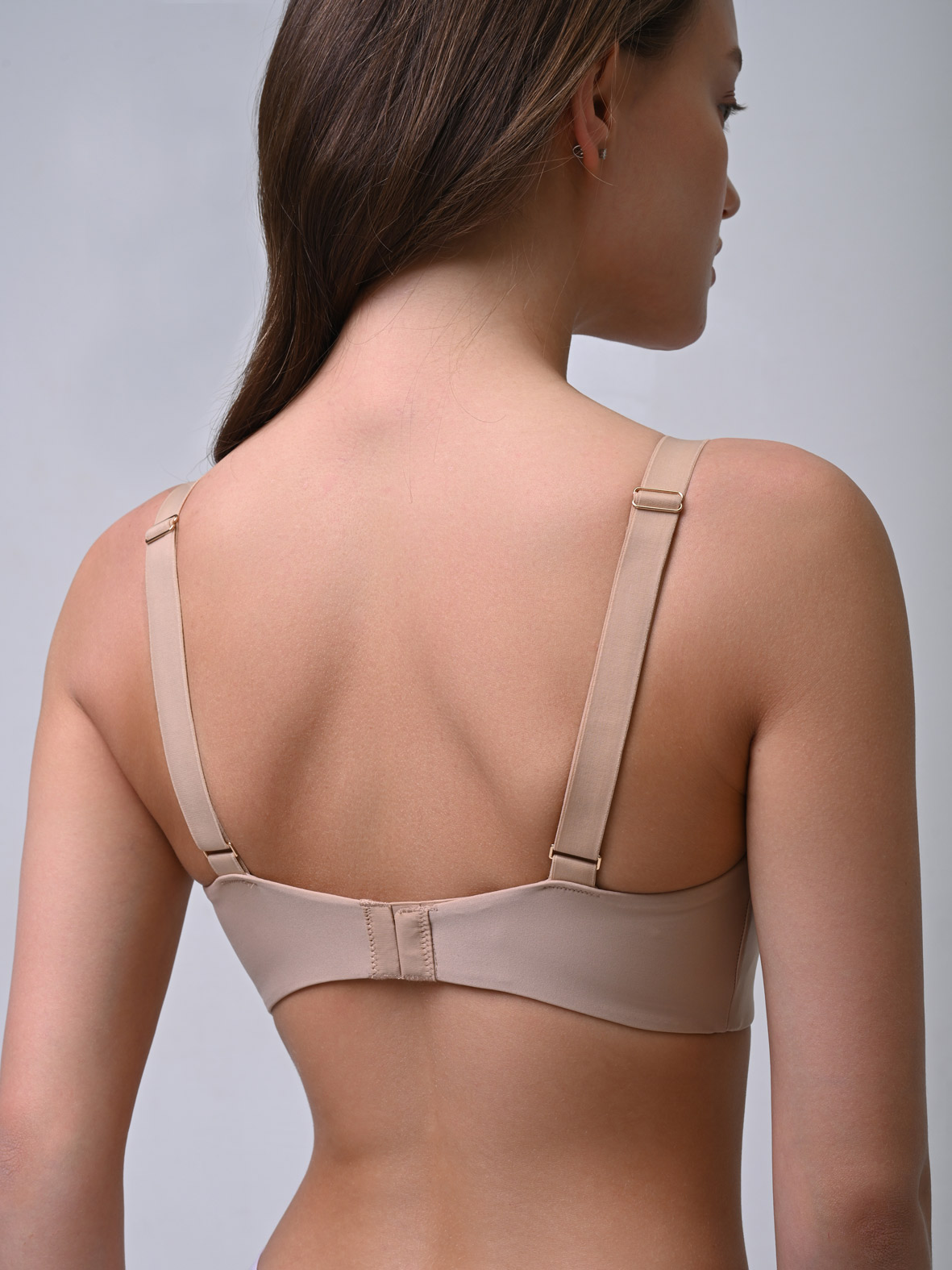 Бесшовный бюстгальтер из полиамида на плоских мягких косточках с мягкими чашками обеспечивает поддержку груди и комфортную носку в течение всего дня.