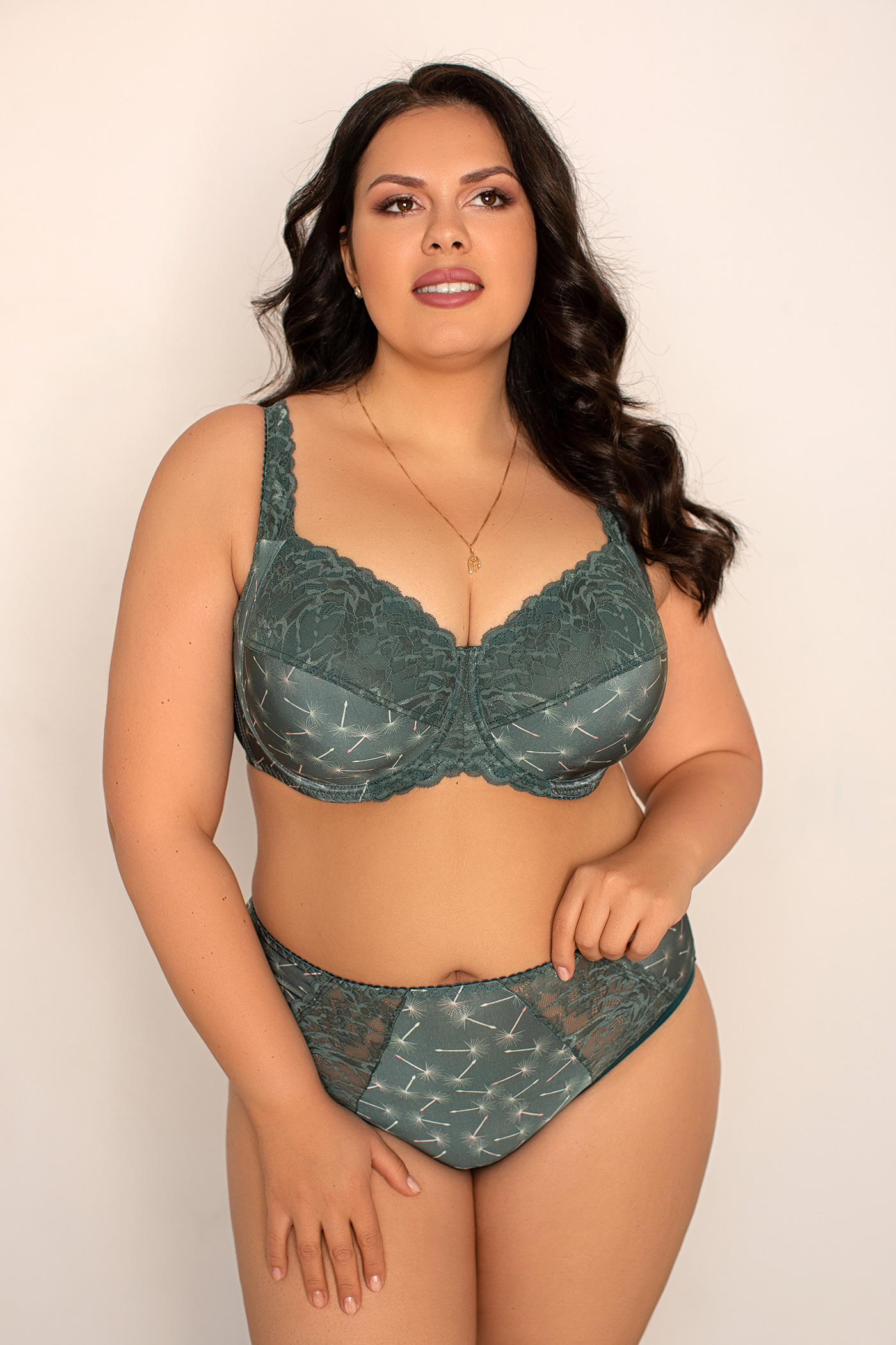 Комбинированная чашка из эластичного кружева и эластичного принтованного полотна, дублированного хлопком. На каркасах. Кружево дублировано сеткой, а бочок тонким софтом.