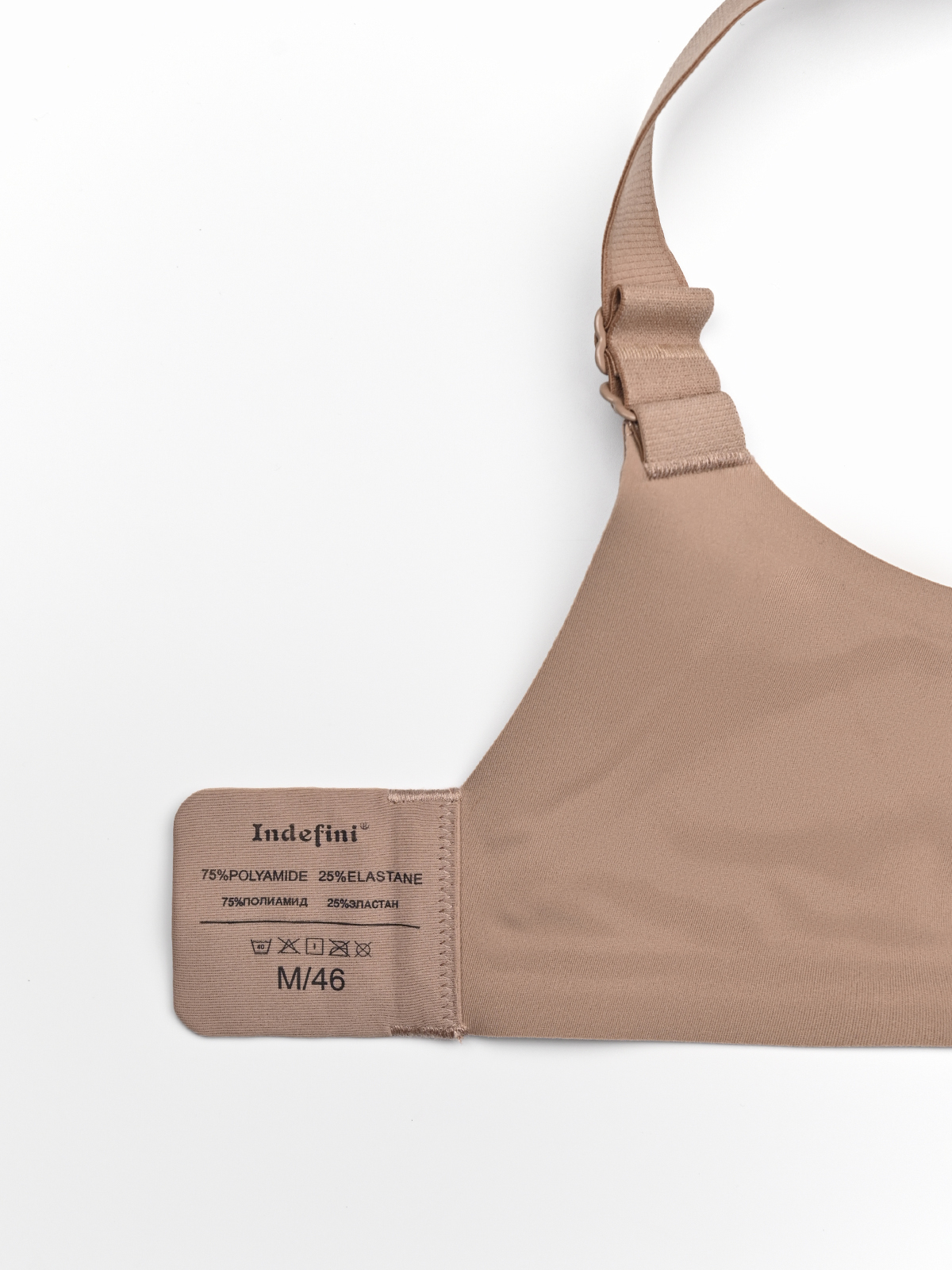 Бесшовный бюстгальтер теплого кофейного оттенка станет незаменимым элементом гардероба. Мягкие чашечки без косточек, наполнены поролоном, обеспечивают комфорт и поддержку груди. Боковые части изделия дополнительно усилены для поддержки формы. Широкие регулируемые бретели позволяют идеально настроить посадку бюстгальтера под индивидуальные особенности фигуры.