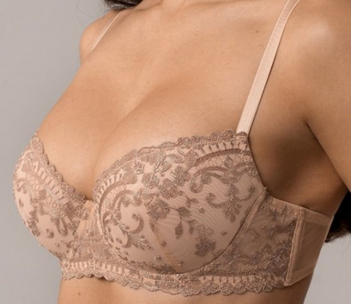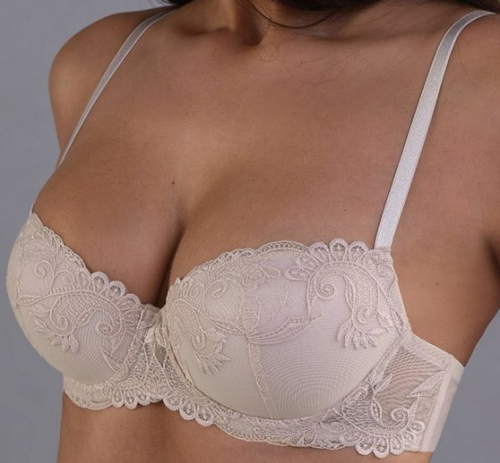 Оптовая продажа. Бюстгальтер женский с формованными чашками, на косточках. Бретели регулируются по длине, несъемные. Модель выполнена из мягкой эластичной сетки и элегантной вышивки на сетке в растительно-барочном изысканном дизайне в нюдовых тонах.