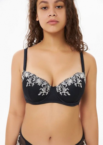 Оптовая продажа. Бюстгальтер - балконет женский с формованными чашками, дублированными сеточкой с элегантной контрастной вышивкой. Стан выполнен из эластичной микрофибры, боковая поддержка с косточками для деликатной поддержки большой груди и придания ей красивой формы. Бретели регулируются по длине, несъёмные, декорированы кружевом. Данная модель представлена в чашке E. Красивое женское белье – это то, которое подчеркивает все достоинства тела и идеально сидит – тогда оно обнажит то, что у вас есть, и выполнит свою задачу на все 100%.