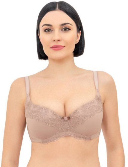 Оптовая продажа. Бюстгальтер женский с формованными полыми чашками, на каркасах. Гладкие чашки по верхнему краю украшены ажурной вышивкой. Бретели регулируются по длине, несъемные.