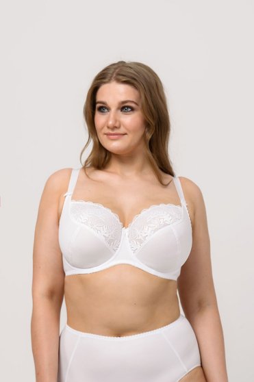 Оптовая продажа. Женский бюстгальтер с мягкими чашками, на косточке, 1/2 чашки из кружева. Широкая бретель позволяет снять нагрузку со спины. Центр изделия декорирован бантиком. Бретели несъемные, регулируются по длине сзади. Застежка с крючками в 3 ряда.
