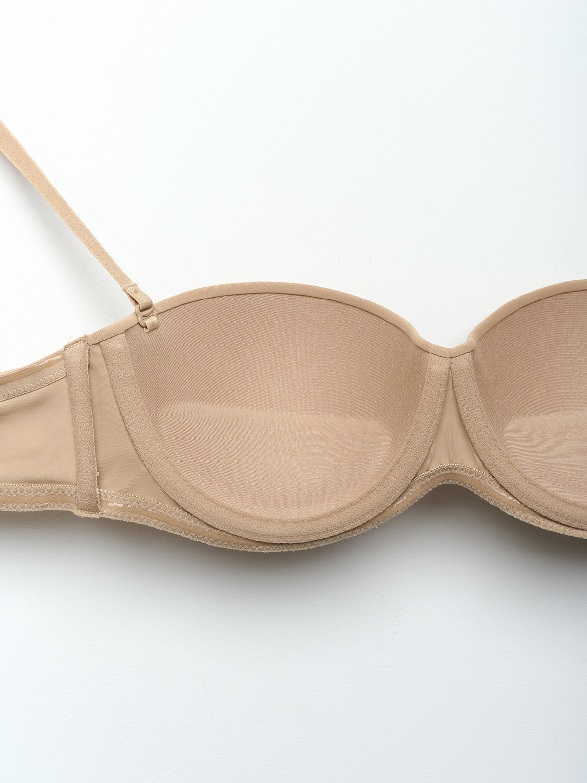 Бюстгальтер с силиконовыми лентами по краям пояса — его можно носить с бретелями как обычный бюстгальтер или без них как бандо. Формованные чашки на косточках и подкладка пуш-ап не только формирует поддержку груди, но и приподнимает ее, сближает к центру. Усиливают поддержку боковые косточки. Универсальный оттенок позволяет вписать бюстгальтер в любой гардероб. Посадка фиксируется регулируемыми бретелями и застежкой на спине.
