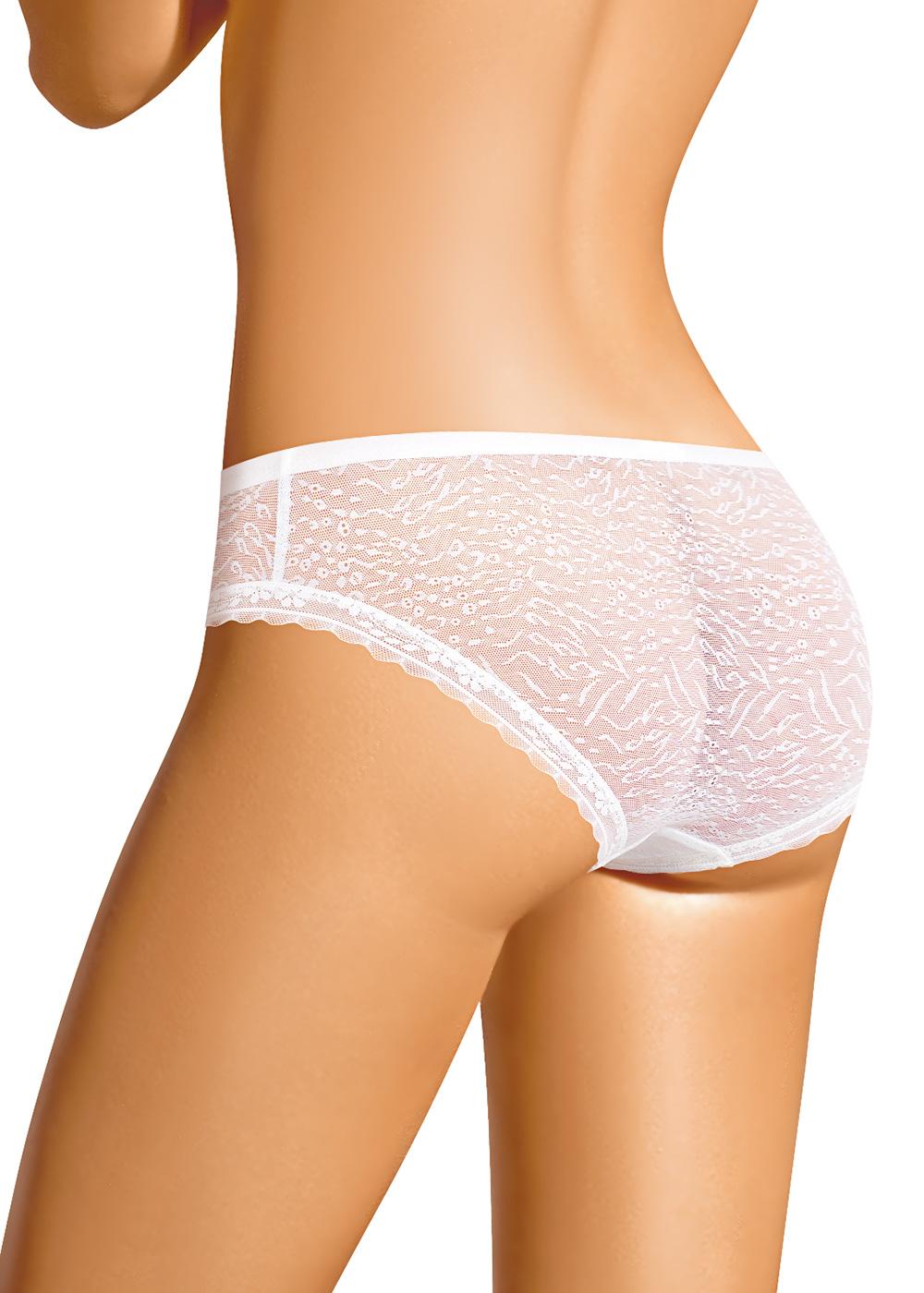 Трусы бикини женские из эластичной сетки. Обработка краев по талии - окантовкой, по ноге - узким кружевом. Хлопковая ластовица.