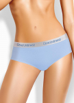 Трусы бикини женские из эластичного хлопкового полотна. Обработка краев по талии - ажурная резинка с фестоном, по ноге - узкая окантовка. По переду и спинке кружево. По переду бант.