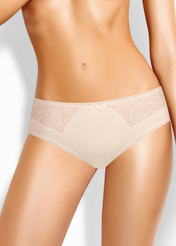 Трусы бикини женские из эластичного хлопкового полотна. По переду рез с кружевными вставками. Обработка краев по талии и ноге ажурная резинка (точечный зигзаг). По переду атласный бант.
