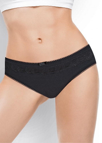 Трусы-бикини женские из полиамида. Обработка краев - ажурная резинка с фестоном. По переду вставки из кружева и бант. Производство Китай.