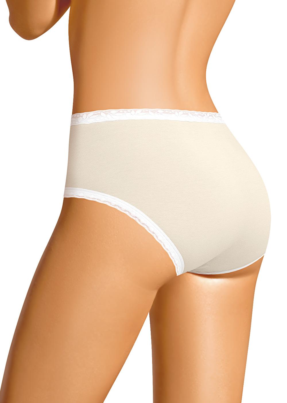 Трусы-слипы с завышенной посадкой из плотного эластичного материал, по ножке и по талии кружево, по всем швам изделия выполнена клеевая обработка.