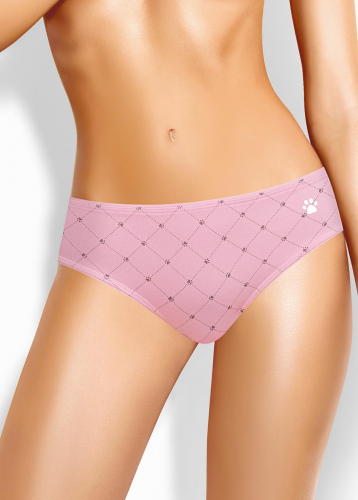 Трусы слипы женские из эластичного хлопкового полотна. Обработка краев по талии - широкая резинка в рубчик, по ноге - полуокантовка. Спереди принт.