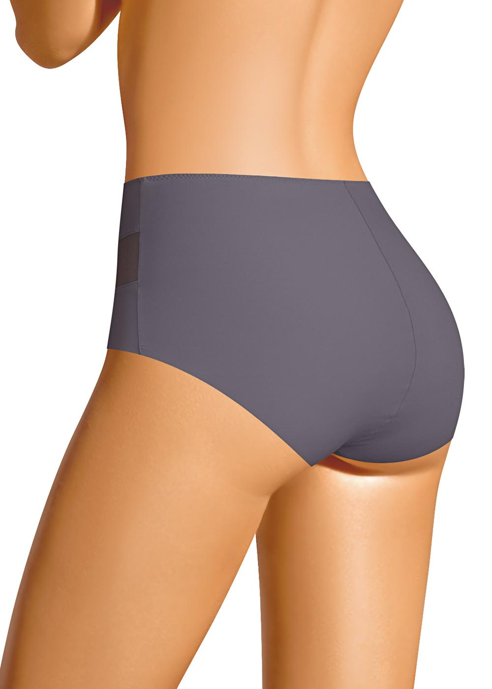 Трусы слипы с завышенной посадкой, сзади и по линии бикини бесшовная гладкая обработка, спереди декоративные диагональные вставки из плотной сетки, перед дублирован сеткой, по талии обработка с зигзагом и узкой резинкой