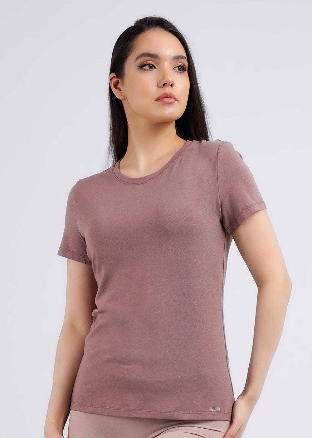 Футболка женская из эластичного полотна с хлопком и модалом в составе. Короткий рукав. Круглый вырез горловины.