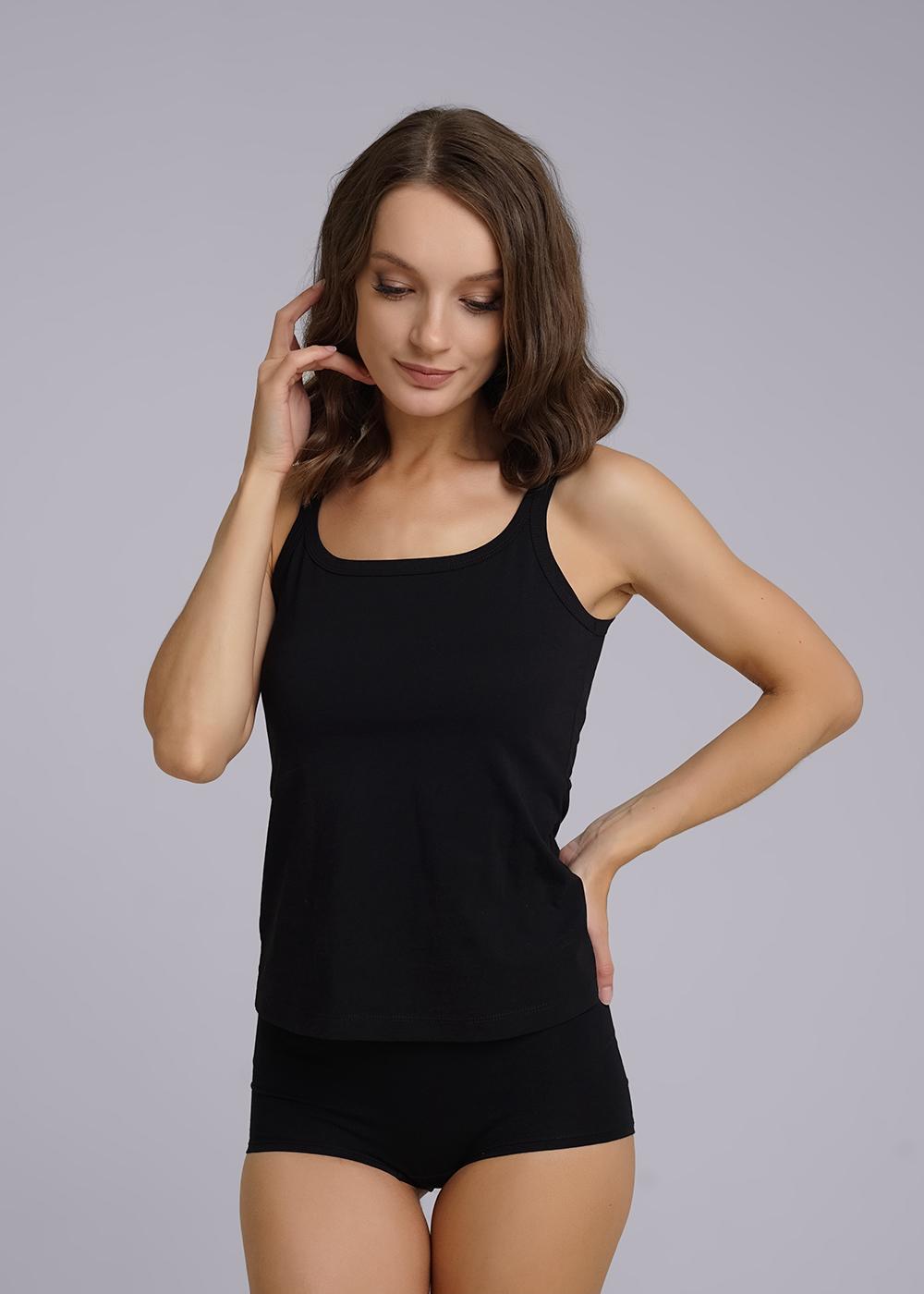 Майка женская из эластичного хлопкового полотна. Узкая бретель.