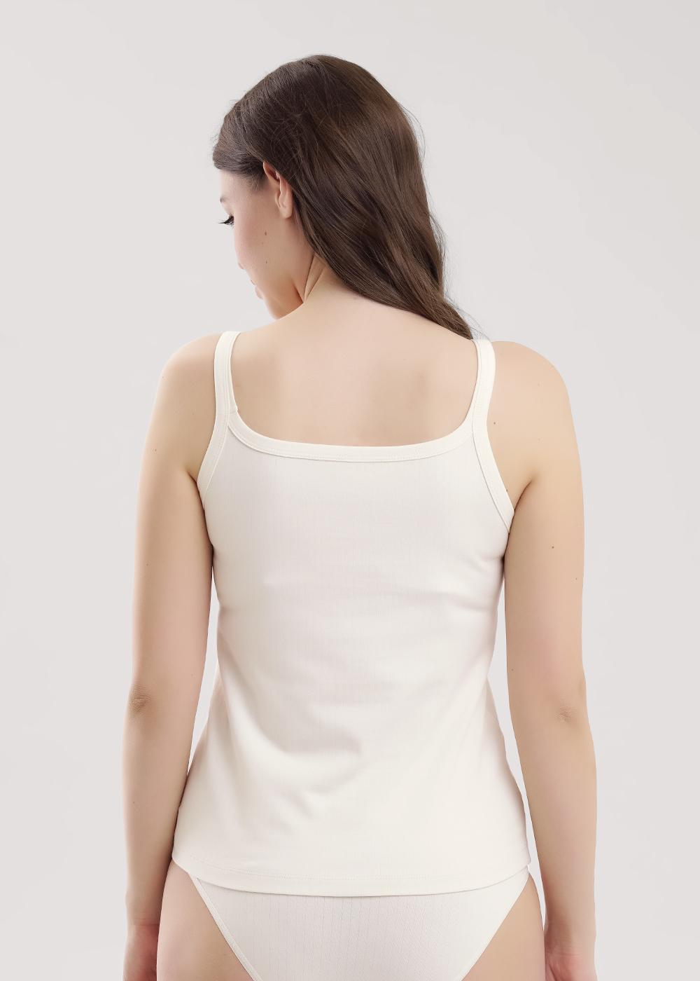 Майка прилегающего силуэта, из эластичного хлопкового полотна. Узкая бретель.