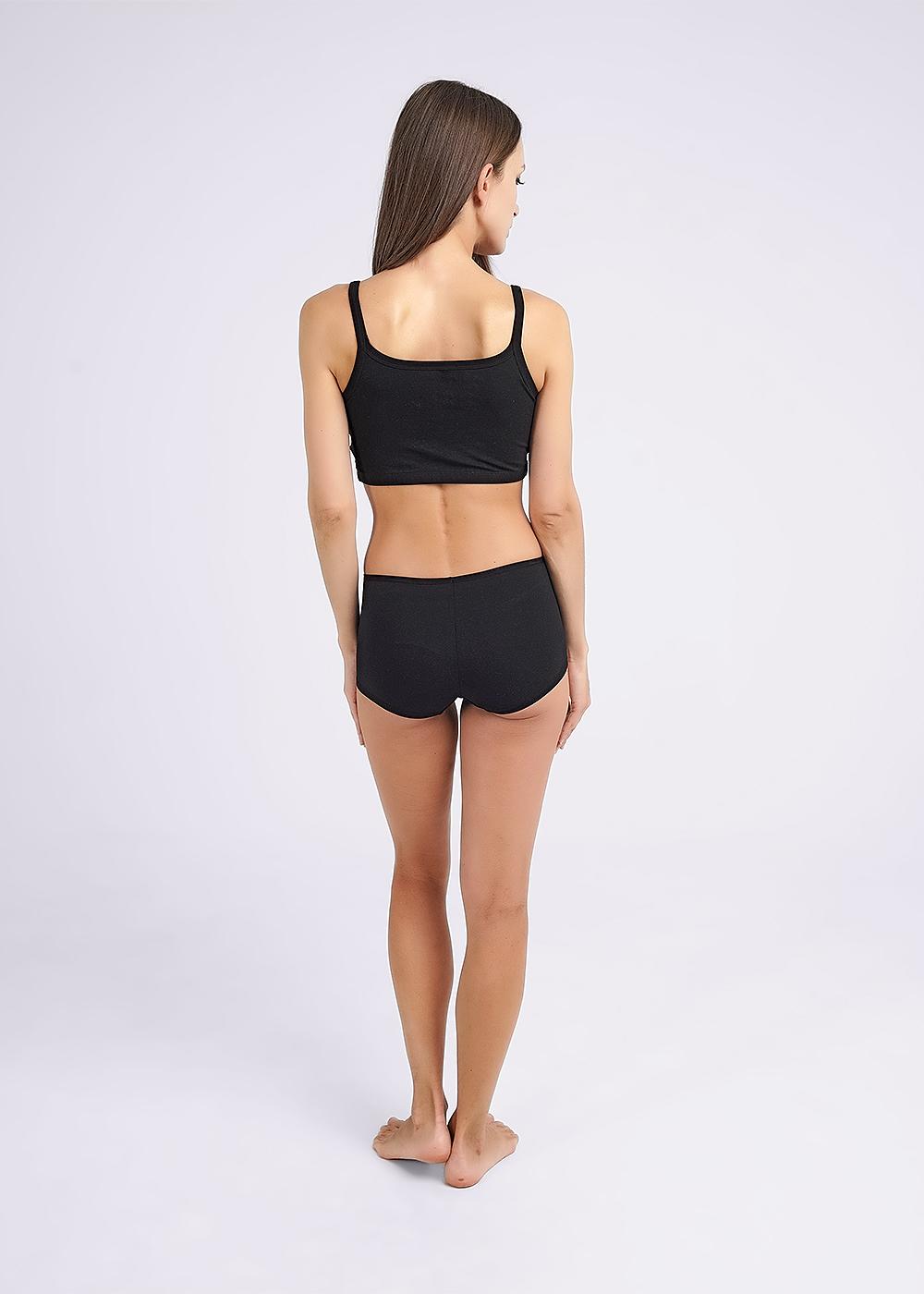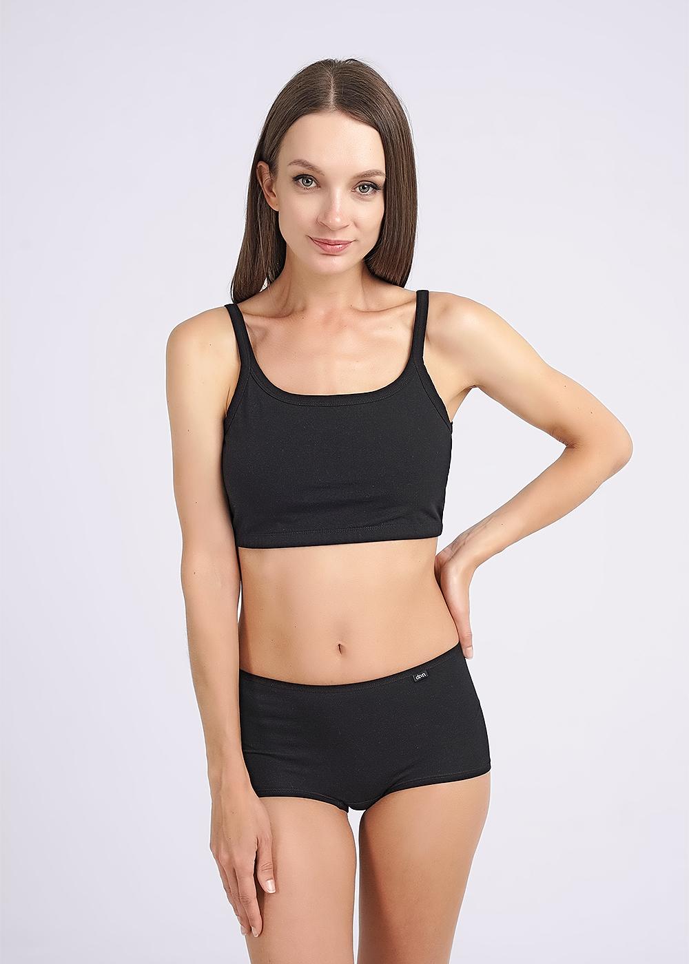Майка-топ женская из эластичного хлопкового полотна. Двойной перед. Узкая бретель. По низу широкая резинка.